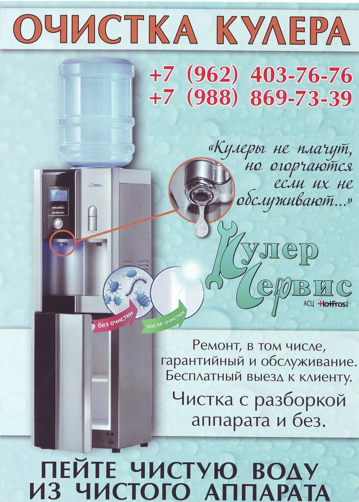 Отличный и быстрый ремонт. Не знали, что за кулером необходим дополнительный уход, особенно чистка. Теперь регулярно будем обращаться к «Кулер Сервису». Очень понравилось обслуживание. Спасибо!
