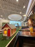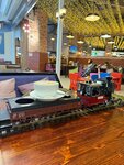 Понравилось оформление железной дорогой по которой ездит поезд-доставщик. Для детей есть небольшая зона. Нам ( особенно детям, конечно) понравилось, что все привозит поезд, ждали его прибытия с восторгом. Еда нам понравилсь. Пицца с сырними бортиками , большая порция борща со сметаной и салом, очень красиво украшены суши. А вот Фондю очень маленький, не очень вкусный и такой за 450 р дороговат. Присоединяюсь к другим отзывам об официантах. Долго не подходили;принесли пиццу, суши, но не принесли приборы; накопилась гора грязной посуды, не убирали её.