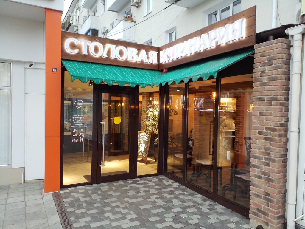 Не могу сказать, что цены завышены, в соседних столовых цены процентов на 20 выше. Единственная столовая, которая работала в конце апреля, все остальные были закрыты. Принимают карты. Дружелюбный персонал, всегда улыбаются. Столовая просторная, светлая. Кулинария - это заведение с отдельным входом, там уютно, но выбор блюд меньше и горячие блюда заветрены. Но выбор выпечки и десертов больше. Если поесть нормально (а не только выпить чаю с выпечкой), то лучше идти в столовую. Жирный плюс - самое лучшее расположение - перед главной площадью, оплата картой, график работы до 21.00, но 9 мая, например, они закрылись ещё позже - до последних клиентов.