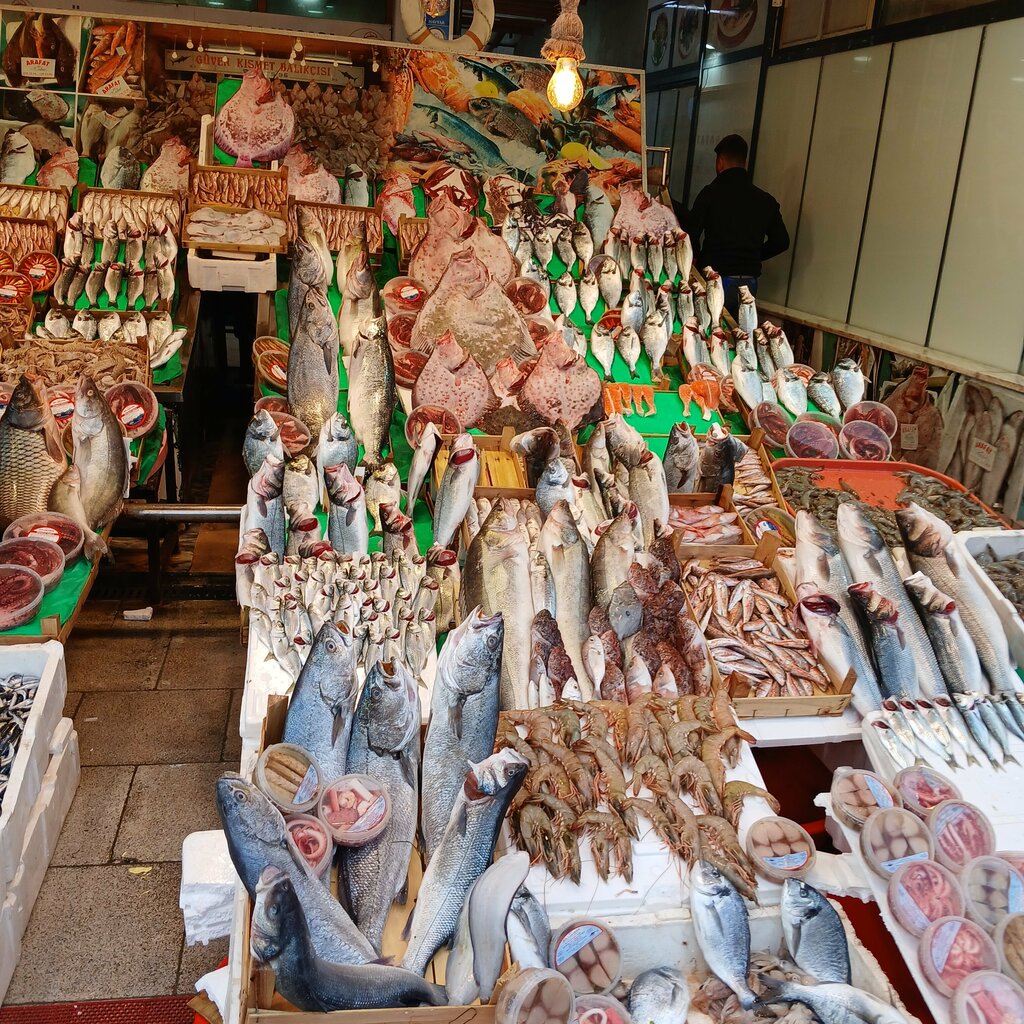 It's a pretty decent fish market, but there are some nuances). Some of the sellers speak Russian, which is fascinating), some speak English, most only speak Turkish, so it was fun. In fact, the price tag is quite democratic. I think we didn't bargain enough, we need to be bolder. There is plenty to choose from, the product is fresh. Everything that is sold there can be cooked, the options are either to take with you, or to sit down in a cafe (for an additional fee for cooking). We decided to take it with us, probably there was a mistake in this and the quality of cooking suffered ((. The lobster was frankly undercooked, the seafood is one masterpiece, and the other is undercooked, the shrimps were pleased (but they are difficult to spoil). We waited for 30 minutes. I wanted to take an octopus (I ate it in Egypt, cooked it at the market, took it with me - delicious), but they said they had to wait 2 hours...