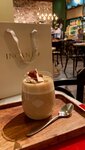 Забежала попробовать Уфачино) мне он напомнил латте с невысокой плотной пенкой с добавлением травяного настоя, буквы - крошка с кислосладким вкусом (мне показалось так). Советую попробовать! Мой напиток не был горячим, мне не хватило градусов) как-будто подостыл, но возможно так задумано. Пицца Маргарита была вкусная, что-то особенное не заметила. Цены: Уфачино - 290 р., пицца небольшая - 320 р. Атмосфера в кафе спокойная и мне, поглядывая по сторонам захотелось... в баню) 🤔 светильники напомнили перевёрнутые тазы, зелень, свисающая с потолков, заготовленные веники, а декор под дерево - полоки, на которых можно попариться) Можно просто посидеть и поработать, заказав, что-то из еды, как раз рядом сидели посетители, уткнувшись в ноутбуки. Официанты приветливы. Вначале принесли большую бутыль чистой воды со стаканом. В целом понравилось, зайти перекусить можно!