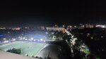 Excellent coworking and rooms on the upper floors overlooking the night of Almaty.