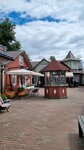 Между 2 центральными улицами сохранили 3 дворика деревянных одноэтажных домов. Снаружи оставили резные ставни, ярко выкрасили, внутри - современные магазины, пара ресторанов и одно кафе. Все безумно дорого. Ничего не купили, но с удовольствием гуляли по магазинам, когда была плохая погода. Особенно понравились магазины дизайнерской одежды Душегрея и местного мастера Дарьи Волковой, сувениры Мухомор, масляная лавка, где выжимальные аппараты весь день жмут разные масла - из льна, облепихи, орехов, семечек. Есть магазинчик с продуктами со всей россии - от консервов до шоколада с кедровыми орехами. Сувенирные лавки ломятся от фарфоровых фигурок, ярославской майолики (плитки) и елочных игрушек