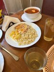 Остановились пообедать. Девушки в желтых футболках приняли заказ, быстро принесли. Брали по супу и второму с мясом + пирожки , на 4х получилось 1,6 тр. Выпечка вкусная, борщ на троечку, второе на твердую 4ку.