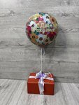 Не могу не восхититься оформлением подарка! Фольгированный шар с цветочным узором выглядит очень свежо и ярко, надпись «С Днём Рождения!» добавляет душевности. Коробка, обёрнутая в насыщенную коричневую бумагу и украшенная изящной бело-лавандовой лентой, смотрится элегантно. Такое оформление точно запомнится! Спасибо за креатив и профессионализм!