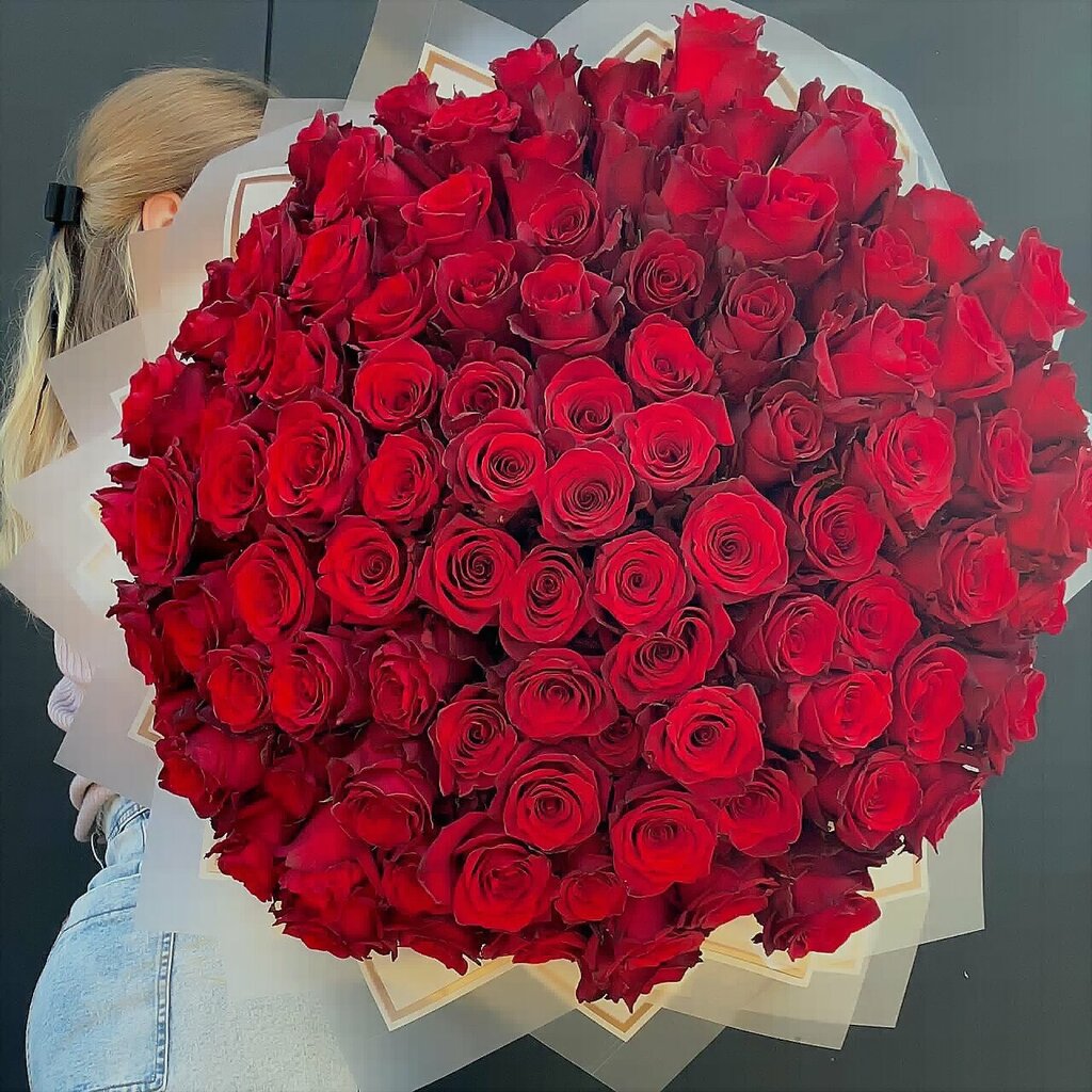Этот роскошный букет — воплощение страсти, элегантности и утончённой красоты. Композиция притягивает взгляд насыщенным сочетанием глубоких и светлых оттенков, создавая эффектную «палитру» эмоций.