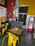 Сразу отмечу плюсы: - положили на одно крыло больше. - бургеры вкусные. Минусы: - сотрудник зала всё время ожидания заказа находился на кухне, часто сидя на рабочей поверхности кухни! (Фото прилагается) - в зале очень сильно пахнет перегретым маслом, будто бы не работают вентиляция и масло для фритюра долго не менялось. - весь зал грязный, на ряде столов куча панировки, под столами фантики. (Фото прилагаются). При этом гостей в заведении вообще нету, а сотрудники общаются на улице. - не выдали и не положили в заказ чек. Курица пожарена норм, уровень КФС, в целом. Претензий к этому нет. Хотели поесть в заведении, по итогу, после увиденного, взяли с собой.