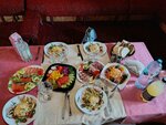 Гуляли юбилей мужа, очень всё понравилось! Помещение кафе достаточно просторное для 30 человек. Чисто, праздничное оформление зала, что добавляло радости. Разнообразие блюд, интересные рецепты салатов, красивая и своевременная подача, особенно горячего. Отдельную благодарность хочу выразить Ирине Борисовне - директору кафе, она предложила заказать меню чтоб угодить всем гостям. Закуски и салаты вкусные и свежие, на горячее картошечка с мясом по оригинальному рецепту - обалденное блюдо! Шашлык сочный, вкусный пальчики оближешь! Также хочу сказать спасибо официанткам Ольге и Ирине, такие молодцы! Подносили еду и меняли посуду когда гости были на перекур либо танцевали. Спасибо за праздник и угощения. Видно что работники любят свою работу.
