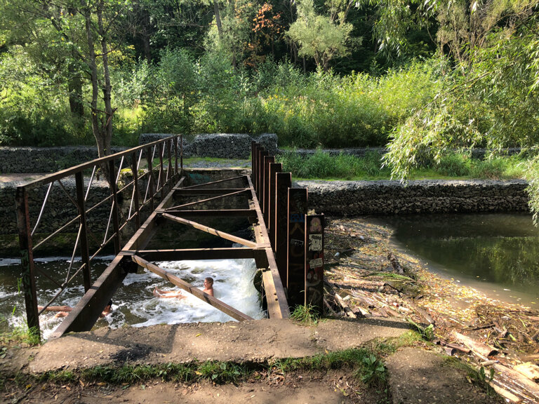 Три звезды только за то, что всегда ездили сюда в жару. Плотины уже нет давно. Была там 12.07.2021. деревья повалены поперёк реки, правда бригада рабочих что-то пилила вдалеке. Деревянные дорожки... Эм, все переломаны, пройти от памятника вниз невозможно! Запустили всё что только можно. Очень жаль. Раньше лучше было. Из плюсов-это в будни мало народу + есть рыба(в основном плотва).