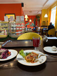 Любимое местечко. И самая вкусная вегетарианская и веганская еда. Приготовленная с душой. Мой личный топ это салат под шубой и картофельная запеканка. Сегодня для разнообразия взяла пиццу и салат с баклажанами. Тоже прекрасно. Кафе располагает и одной побыть и с друзьями встретится. Всегда комфортно.