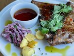 Забронировал ресторан заранее, попросил лучший столик (правильно сделал, что забронировал - к вечеру была почти полная посадка). Действительно наш столик был лучшим - угловой у окна, с панорамным остеклением с двух сторон. Большое спасибо! Меню довольно разнообразное; думаю, что каждый подберет еду по вкусу. Я брал клопсы (на фото) - хорошо и очень сытно. Любопытный синий коктейль (не вспомню название; помню лишь, что был джин и черная смородина) - интересный мягкий вкус. Обслуживание было великолепным; наш официант явно любит свою работу -) Идеальное место для первого ужина в Светлогорске - будут отличные впечатления, воспоминания в течение всего отдыха.