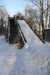 Выпал снег, сформировали снежный покров на горке и на съезде с неё. Желающие по очереди весело скатываются с горки.