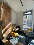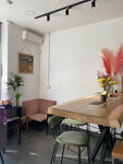 Очень уютная кофейня. Приятный персонал, вкусный кофе. Позавтракали, купили дрипы для подарков. Немного удивило, что яйцо и круассан были холодные и собаке не предложили воды.