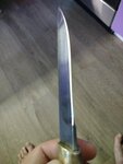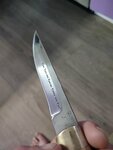 Отличный нож,сказать больше не чего и маленький в подарок вместе с маслом,беру второй,доставка по почте быстро и без проблем,да забыл добавить все сертификаты и гарантия есть