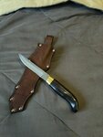Заказывал два ножа "Кабан" себе и куму. Ножи выполнены качественно, клинок полирован, заточка отличная, волосы бреет! В комплекте кожаные ножны и положили в подарок масло для пропитки рукоятки, как и договаривались. Документы на месте, упаковка надежная! Остались довольны, спасибо большое за вашу работу!