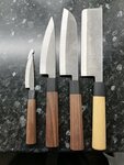 Давно хотел ножи в японском стиле. С хорошей сталью, чтобы РК держала заточку и не крошилась. При первом же использовании жена прилично порезала палец. Будте осторожнее, это не советский "пластилин", и не китайская жестянка родом из 90-х. Хотелось бы угол заточки градусов в 15-17 на сторону, чтобы ножи вообще резали как лазер. Но это уже чисто вкусовщина😁. Спасибо мастеру! Отдельная благодарность за общение вконтакте!