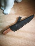 Давно хотел себе нож Якут, долго не решался, но в итоге решился. Наткнулся на кузню случайно, написал, что хочу, были оказаны рекомендации какой нож по моим запросам больше подходит, но так как я давно хотел себе Якута, то его и заказал. Еще мне посоветовали купить большой шеф-нож, в общем купил оба ножа. Качеством ножей остался доволен, буду рекомендовать знакомым услуги кузни, если кто-то захочет себе такие произведения кузнечного дела. Также заказал ножны черного цвета.