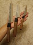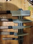 Заказал комплект кухонных ножей. Поторговались, сделали хорошую скидку. Дополнительно в заказ добавили разделочную доску , мусат и магнитный держатель. Ножи отличные, заточка качественная, посмотрим как держит. рукоятки очень удобные, Чувствуется, что держишь качественную вещь. спасибо кузнецу!