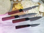 Ножи просто огонь рекомендую очень острые, удобная ручка в руке сидит отлично, режут продукты слайсера не надо можно нарезать очень тонко при этом не замять продукт, впечатление от ножей восторг 👍, большое спасибо мастеру и производителю, доставка быстрая, пришло всё целое дали пропитку для ручек в подарок, производитель всегда был на связи до получения товара, Спасибо вам большое, так держать 🤝!!!!!!