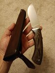 Всем доброго дня. Получил я свой малый Якут. Ожидания оправдались, доволен очень. В этот же день провёл испытания. Ободрал и разделал трёх зайцев, после этого пострагал дерево, на последок порезал бумагу. Нож показал себя на все 100. Заточка осталась прежняя, остроту не потерял. Спасибо мастеру! Заказал уже второй, пуукко. Острый, дерево строгает, бумагу режет. Рукоять, для меня, удобная. Спасибо за работу. Вот только мастер обещал положить секретный подарок, а его не было. Забыл наверно.