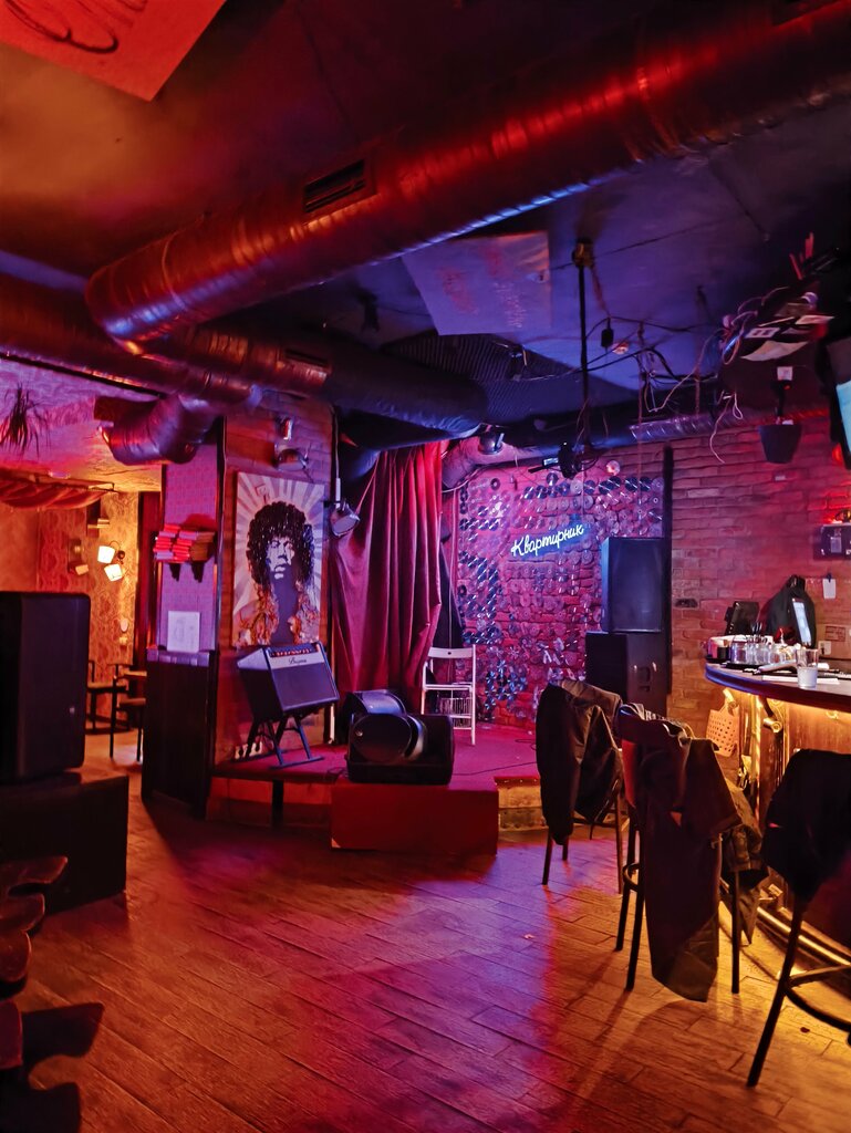 Evenings at this bar leave me with two impressions. On the one hand, the atmosphere here is really incredible — cozy corners and soft light create a feeling of homeliness. The ingenious concept of "Kvartirnik" is that every evening there are different performers, and the space is flooded with creativity and inspiration. This place is ideal for meetings with friends or a relaxing evening alone. However, the food is not always smooth. There are times when you order something and it doesn't turn out to be exactly what you expected. But it is worth noting that the staff is always on top — they sincerely apologize and even provide discounts as compensation, which is pleasantly surprising. As a result, Kvartirnik is a place where you want to return, despite minor flaws in the menu. There is always a warm atmosphere here