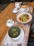 Уютное место с хорошим меню, многое бы попробовали! Брали лывжу и чанах, оба блюда великолепные, мясо нежное и нежирное. Также интересный салат из курицы с тыквой, лёгкий и приятный на вкус. Десерт в виде запечённого яблока с творогом даже превзошёл ожидания, оказалось очень вкусно!