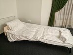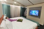 Начну с главного! Этот отель совершенно не тянет на 4 звезды. Нам совершенно не понравился люкс, как было заявлено. Бестолковая планировка номера. На перегородке перед кроватью висит телевизор. А в месте, где хочется отдохнуть и перекусить, два плетёных кресла и маленький столик. Нет дивана. Ребёнку застелили раскладушку тонким матрасом. Типа, допместо. Занавески с пятнами. Рядом нет ни кафе, ни магазина. Завтраки в отеле не вкусные. Пережаренные сосиски и яйца. А вот ценник как за люкс. 8000 за ночь и завтрак 600 р. Пытаются поддержать чистоту.