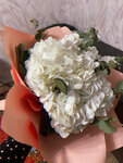 Молодой человек заказал букет гортензий на 8 марта, (фото букета предварительно скинуто не было) забрал вечером и подарил. Дома сразу поставили букет в воду, в большую вазу, в прохладную комнату с нормальной влажностью. Корни срезали под 45. Уже утром все три веточки повяли. Очень обидно, при этом букет не мало стоил.
