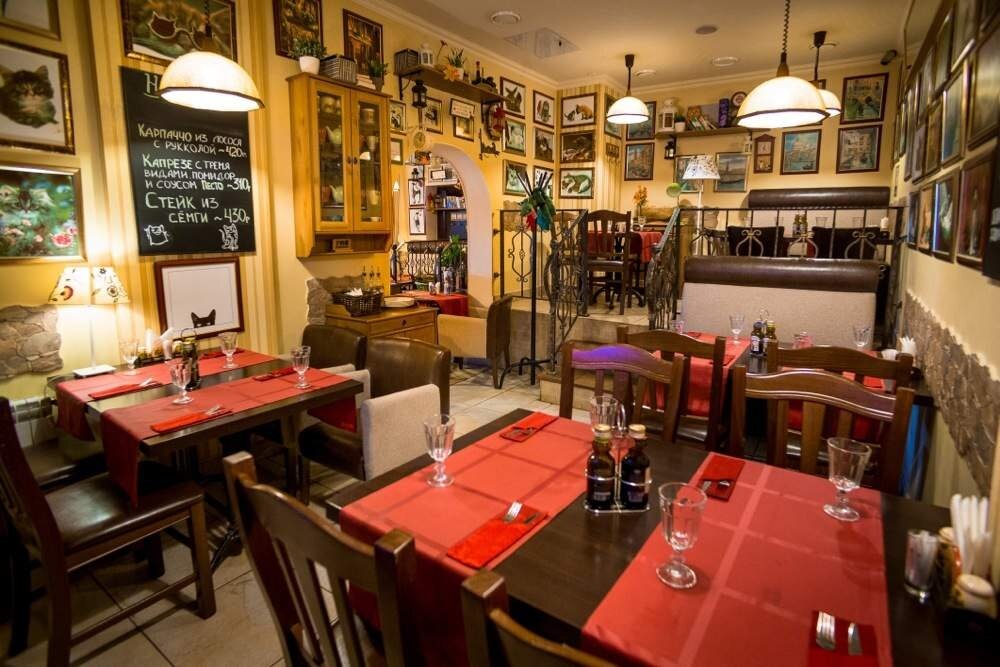 Полюбила эту кошачью пиццерию ещё когда у них был филиал на Каргопольской. Его закрыли, приходится ездить сюда. Очень уютно, по-домашнему, вкусно. Кошки добавляют оригинальности.