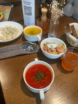 Зашли с ребенком 6 лет. Кафе порадовало. Внутри уютно. Расслабляющая музыка, атмосферно и чисто. Девушка официант приветливая, вежливая, внимательная. Меню лаконичное, выбор небольшой, но при этом все равно есть из чего выбрать. Не мало важно, что меню подходит и ребенку. Бизнес ланч от 500 до 600 в зависимости от наполнения. Еда вкусная. Порции не маленькие. Место хорошее. Рекомендую к посещению с ребенком.