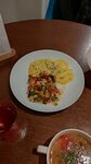 Проживаем в гостинице. Кафе расположено на 1 этаже гостиницы. Обслужили очень быстро. Официант внимательный, заботливый. Бизнес-ланч сытный: выбрали салат летний (порция приличная), суп гороховый в меру густой, куриный суп с лапшой и яйцом тоже наваристый, вареники с картофелем и грибами тоже понравились. Пили компот из сухофруктов. Все блюда были горячими, свежими. Обязательно вернемся сюда. Блюдо не сфотографировали. Съели все быстро,