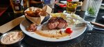 1. Мясо очень вкусное, картошка тоже. Зачем лук в сметане, не поняла. Добавьте 3 кружка огурца и 2 дольки помидора. И выглядит лучше и вкуснее. 2. Роллы- рис сырой, невкусно. 3. Цезарь на троечку, благодаря достойным креветкам. 4. Напитки принесли сначала взрослым, потом дочери. Мужу принесли салат и роллы, когда он съел салат и почти доел роллы, только мне принесли мясо. Странная неприятная некомпетентность. 5. На столе анонс акции, с пометкой спросить у официанта. Спросила. Ответ- обычно мы с чеком приносим. Что именно непонятно и разве официант не должен агитировать нас участвовать? 6. В итоге чек и ничего. Спросила, дали. Акция звучит неправильно. Участвуйте сами и далее выпрашивайте у официанта. Больше точно не придём. Благо выбор в городе есть. Гости города из Москвы.