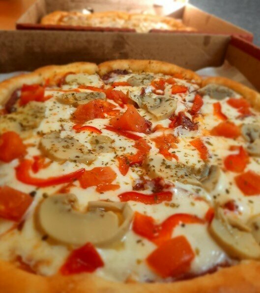 Впервые пробовала пиццу в этой организации. С доставкой в офис. Сработали четко - заказывала с приложения и использовала промокод на подарочную пиццу. Перезвонили, согласовали время. Привезли вовремя. Сюрприз для коллег удался. Пиццы теплые, вкусные, сочные. Кажется, что это самые вкусные пиццы, которые нам привозили🤗