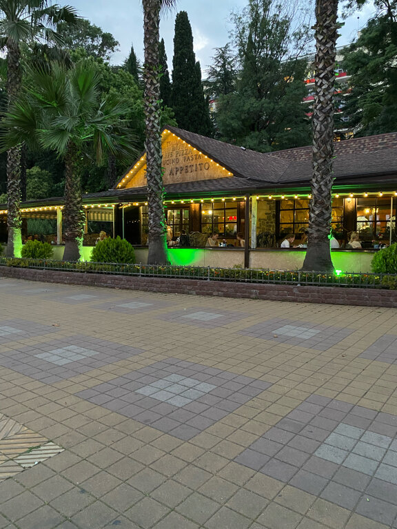 Вкусно! Официанты- красавцы! Вежливое обслуживание, чисто! Даже вредно-противные дети довольны! В октябре 2022г мы снова вернулись в Хосту, и снова мы восхищены нашей любимой пиццерией! Мы обязательно приедем ещё!!! И снова, Здравствуйте! Были в конце сентября 24-го года. Ощущение, что нас ждали! Сели за наш любимый стол возле детской площадки. Еду и напитки принесли очень быстро ( позже были вечером, народу было много, но кухня все равно работает очень быстро) , вежливое обслуживание, на следующий день официант обслуживающий нас запомнил наши предпочтения (особенно детей) и сразу предложил что заказать. Еда великолепна! Особенно запечённая баранья лопатка! Крайне рекомендую! Сентябрь 2025г. Сменились повара и наше любимое кафе, ради которого можно было приезжать в Хосту вновь и вновь, скатилось до уровня среднестатистической столовки! На сегодняшний день поставил бы 3 звезды, но надеюсь руководство примет меры, поскольку жалоб на качество еды было слишком много!
