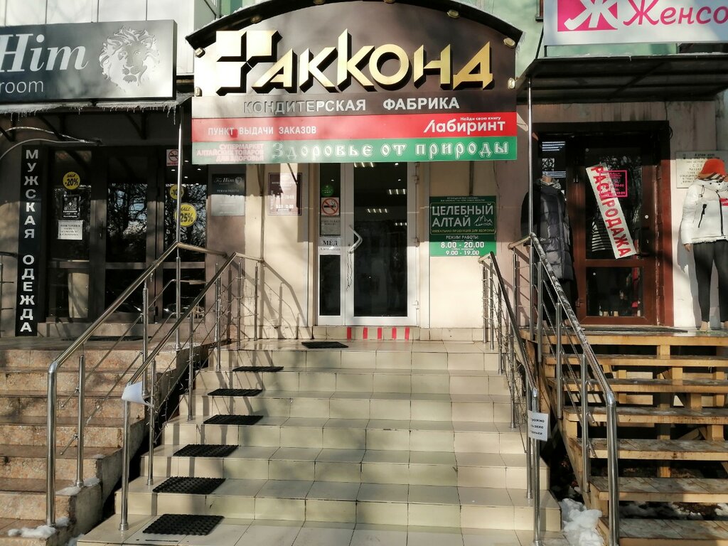 Служба курьерской доставки в г. Краснодар доставляет заказ только в удобное им время. Хотя при заказе через приложение Лабиринт написано, что доставка с 11 до 21 в любое время. Но это любое время выбирает не клиент, а курьер. Либо не корректное описание, либо несогласованность работы с курьерской доставкой. А конкретно по этому пункту самовывоза есть претензия только к вывеске. Очень маленькая. И в добавок в вечернее время яркая вывеска кондитерской засвечивает вывеску Лабиринта.