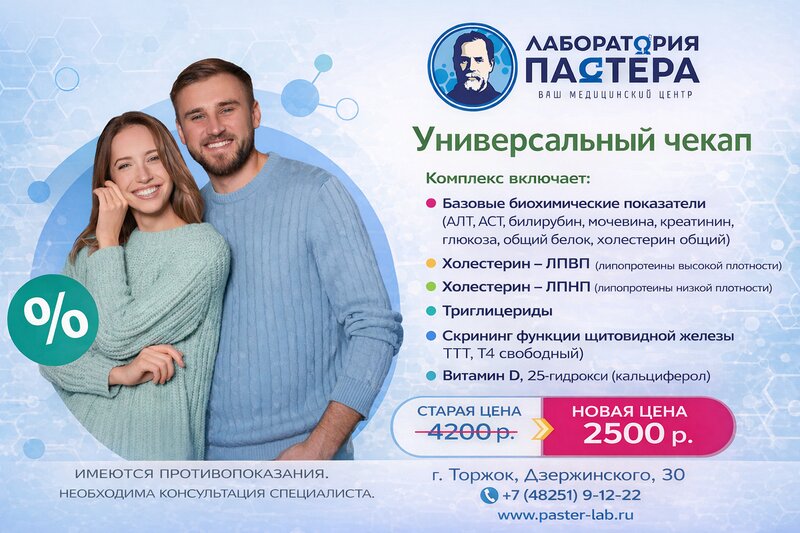 В Лаборатории Пастера действует специальная цена на комплекс анализов: 🧪 «Универсальный чекап» — 2500 ₽ (вместо 4200 ₽) Комплекс помогает...