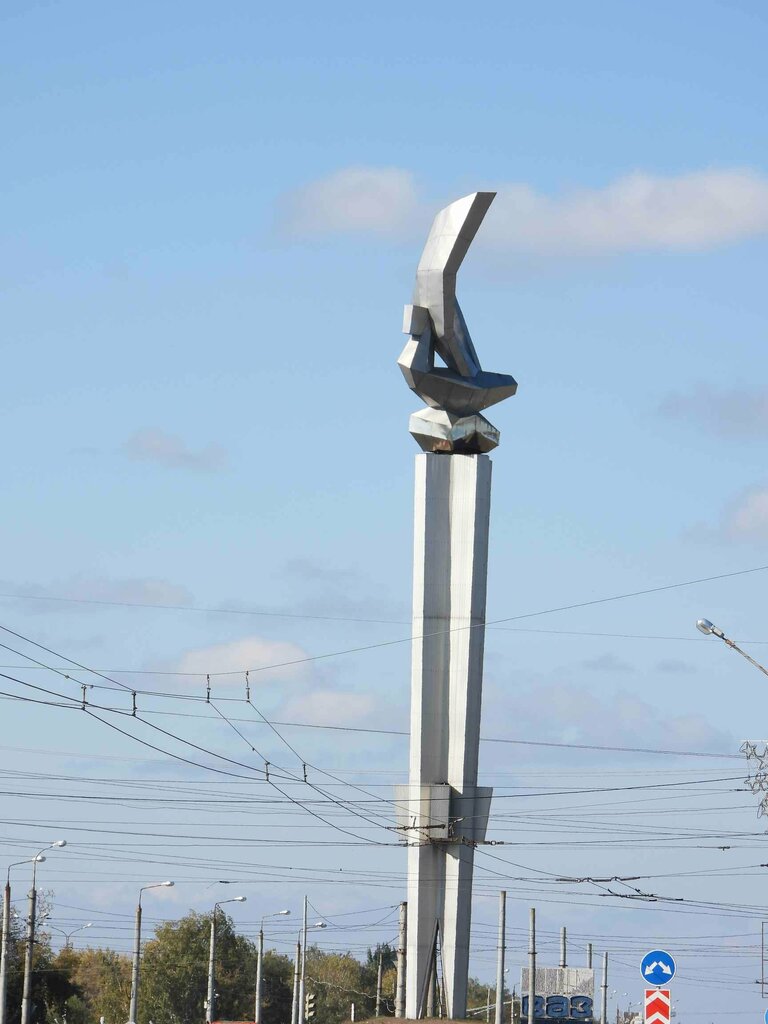 Симпатичный декоративный объект на кольце у АВТОВАЗа. Все к нему уже настолько привыкли, что невозможно представить себе это место без него, а для гостей города сразу понятно, где начинается завод.