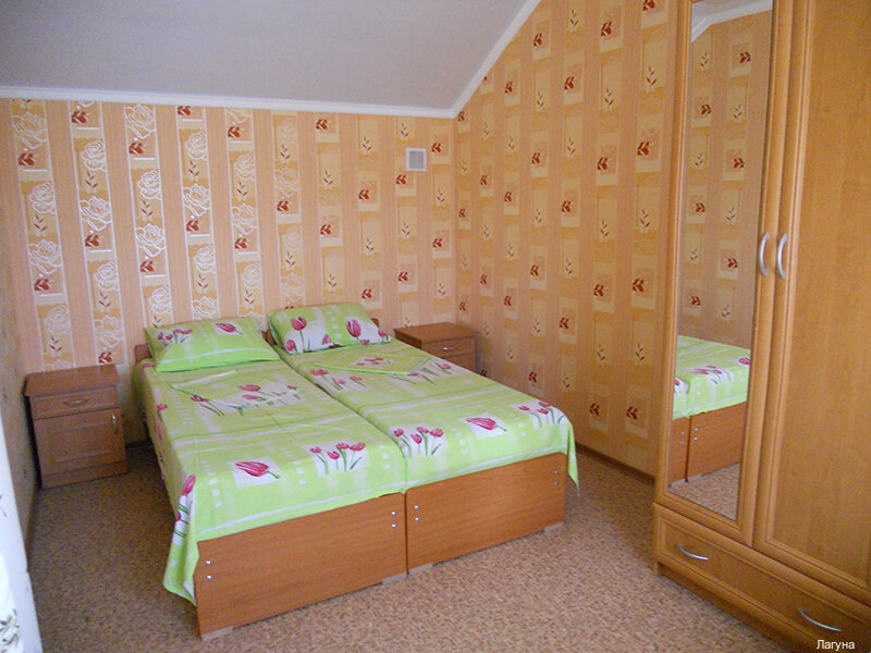 Отдыхали в Лагуне семьей, номера чистые с косметическим ремонтом (не совдеп), что очень порадовало. Территория гостевого дома хорошо облагорожена, оборудована детская площадка, мангал с беседкой, кухня на которой можно приготовить еду, так же столовая зона с готовой очень вкусной едой. До пляжа 1км (примерно) народу очень мало в отличие от других пляжей. Спасибо Жанне за тёплый и гостеприимный приём. Соотношение цена/качества 100%