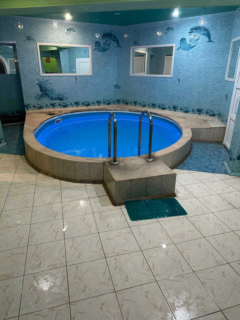 Когда пришли в моменте стало смешно, потом страшно… запах стоит ужасный, в бассейне плавала чья-то резинка, на дне был песок, в бане нету почему-то градусника, хотя по отзывам «он там есть», встретил администратор показала нам всё, хорошая женщина, ну такие люди вызывают недоверие и страх, атмосфера барделя больше слов нет, отдых только если быть под тяжелым градусом тогда все в кайф будет, отдых с детьми я бы категорически запретил в этом месте, кухни мы не увидели… после бассейна когда вышли пока домой не приехали не помылись всем чем только можно глаза щипало невозможно. Совет владельцам обновите уже ремонт, комната для уединение вообще страх божий не понимаем кто там может уединяться, вызовите клининг и вымойте бассейн нормально, и место приобретёт человеческий вид!)