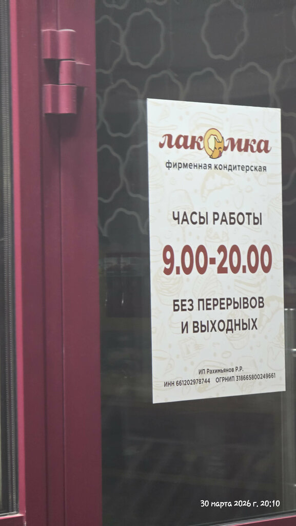 Часто покупаю торты в Лакомке. Всё вкусно, всегда свежая выпечка. Претензии только к неадекватному продавцу, которая закрывает дверь перед носом покупателей, объясняя это тем, что она ещё не обедала (в 17:30). Больше по адресу Лермонтова 83 А не появлюсь.