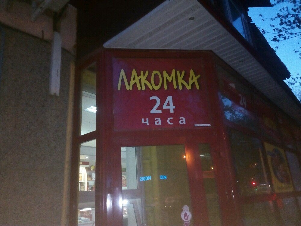 Круглосуточный продовольственный магазин, позиционируется как круглосуточное кафе, в ночное время таксисты заезжают попить кофе и перекусить