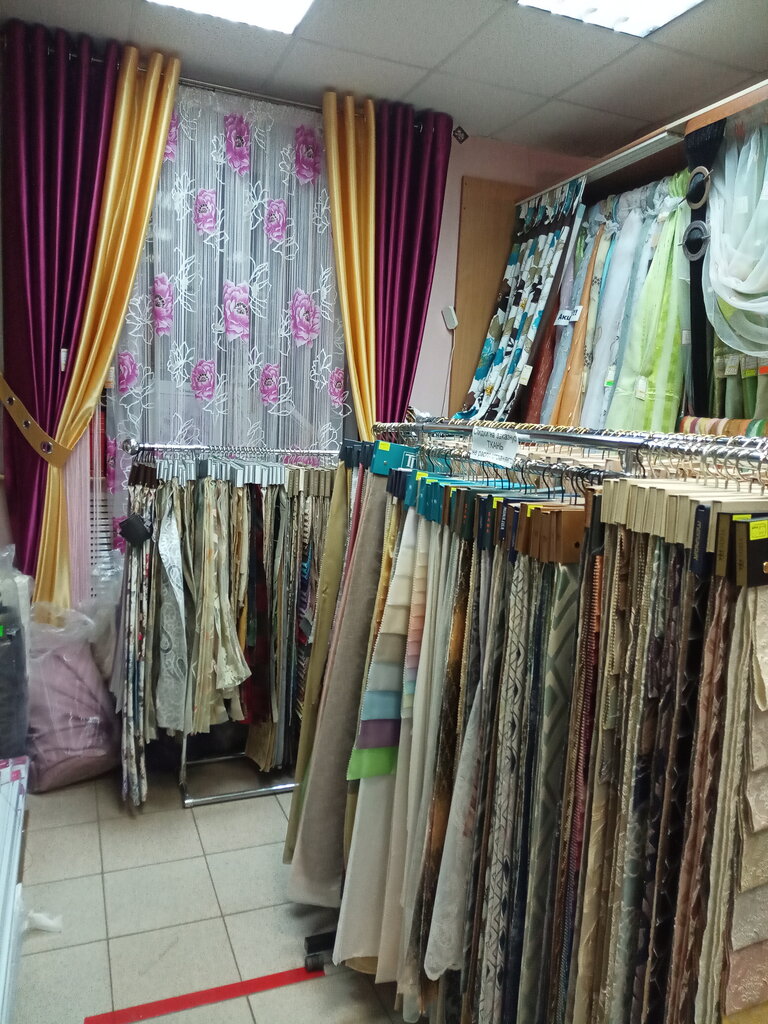 Магазин тканей и штор. Большой ассортимент тканей. Шторы под заказ шьют на фабрике. Не уточнял где, но главное говорят, что не на дому. Теоретически подъехать можно, но не удобно на обочине. Есть самодельные карманы, но надо быть ювелиром, настолько они маленькие. Остановка общественного транспорта в трех минутах от крыльца.