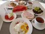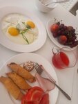 Номер с балконом и видом на море превзошел ожидания: можно в целом никуда не ходить, панорама открывается великолепная. На балконе классные стулья, которые раскладываются до лежачего положения. У бассейна достаточно лежаков, зонтов и столиков даже в пиковое время, плавать можно круглосуточно, ночью бассейн подсвечивается. На ресепшн можно брать полотенца для бассейна. Завтраки очень хорошие: каждый день готовят яйца (банальные омлет и глазунью очень красиво сервируют и подают), на шведском столе есть хороший творог, сметана, хлеб двух видов, сыр, колбасы, свежие овощи, очень хорошие свежие фрукты (были 2 ночи, на обоих завтраках сочные персики, сладкие абрикосы, крупная черешня, хороший виноград). Есть кофе молотый заваренный (бесплатно), а также в течение дня можно купить кофе из кофемашины (американо 100, латте 150) - также все будет красиво сервировано. На завтраках также есть сладкое, мюсли, молоко, йогурты, чай. Завтрак с отличным видом на бассейн и перспективой на море. Также можно пообедать/поужинать за 650 руб/чел. Чуть ниже бассейна видовая площадка с диванами, креслами, шезлонгами и гамаками. Вайфай работает очень хорошо даже у бассейна и в зоне курения. Отель расположен в тупике, поэтому никакого движения нет, очень тихо, несмотря на высокий сезон! Парковка своя, бесплатная. Также есть отдельно стоящее здание с общей кухней - там два холодильника, очень удобно хранить фрукты (хотя в целом там и готовить обустройство позволяет). До центра города неспешным шагом 7-10 минут, но туда имеет смысл сходить только немного погулять по старым улочкам - на территории находиться более чем комфортно. Отдельное спасибо владельцам Светлане и Сергею, а также их другу Евгению, которые ежедневно контролируют работу отеля, что, видимо, и обеспечивает высокое качество услуг. Персонал очень любезный, на любую просьбу реагируют оперативно, помогут с любым вопросом. Мы заселялись в полночь, когда все заведения были закрыты - нам даже приготовили небольшой ужин, после 8 часов в пути это было просто великолепно. Отель оставил максимально приятные впечатления, от отдыха в Крыму в сезон не ждешь такой уединенности и такого сервиса.