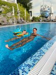 На территории имеется подогреваемый бассейн, лаунж зона, завтраки проходят на веранде с видом на море и лёгкой приятной музыкой. Из номеров с видом на море открывается потрясающий вид на Аю-Даг и Адалары. Номера небольшие, но комфортные, укомплектованы: ЖК телевизором, кондиционером, комодом, открытым шкафом с вешалками. В номерах отсутствует холодильник. Туалетная комната маленькая, но в использовании удобная: унитаз, раковина, душ, полка для полотенец. Никаких штор или перегородок, отделяющих душ от раковины с унитазом, нет. На балконе есть два кресла, столик и сушилка для белья. Завтраки однообразные (каши, блинчики, омлет, яичница, запеканка, фрукты, ягоды, ветчина, сыр, сухие завтраки...), но вкусные. Отель находится в 20 минутах прогулочным шагом вдоль забора Артека и через центр города до набережной Гурзуфа. Трансфера до пляжа у отеля пока нет. Внимательные и отзывчивые администраторы! Советую