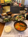 Были в этом кафе 9 февраля 2026 года. Заказывали по том яму и по салатику с баклажанами. Принесли очень очень быстро - минут наверное 10 от силы и все блюда сразу выдали. Это порадовало, ибо очень хотели кушать. По вкусу: суперски, подача красивая, сервис услужливый. Не понимаю почему столько плохих отзывов об этот кафе. Когда читал было прям желание сходить и проверить самому. Мы посещением остались довольны. Рекомендую!