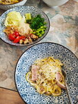 Кафе Лапша оставила у меня двоякое впечатление. Мне не понравился интерьер, но очень понравились блюда, которые заказала. Меню смешанное, разные кухни мира. Цены средние и выше. Есть зонирование, можно с маленькими детьми, имеются для них высокие стулья. Плюс, что есть живые растения, но всё не понятно с дизайном. У меня сложилось впечатление, что на нём съэкономили. Припарковаться можно у DNS, остановка рядом.