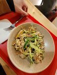 К сожалению, еда мне вообще не понравилась. Пад Тай - не похож на настоящий от слова совсем.. Рамен - на вкус как грибной супчик с сырой лапшой, в которую бросили переваренное яйцо.. Как то все не интересно. Порции большие, цены приемлемые. Но у нас в СПБ, когда я заказываю рамен, то я прям кайфую от вкуса, а тут прям никак, просто набила живот... Выбирала заведение куда пойти очень долго, тк здесь проездом и хотелось чего то вкусного, но не сложилось у нас. Помещение в целом современное и просторное. Официантов нет, самообслуживание. А еще, что меня огорчило - кафе не догфрендли. Прям на входе об этом 3 раза написано крупным шрифтом. Якобы люди с аллергией могут находиться в кафе. Но такие люди могут встретить собак и на улице, в магазине или в лифте. Не запрещать же собак теперь! Никто не говорит с ними контактировать 🤷 В общем, не приятная тема. Но это не влияет на отзыв в целом, еда от того что можно было бы с собаками, вкуснее бы не стала.
