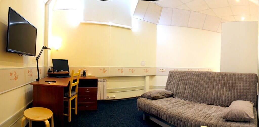 Останавливалась на одну ночь. Очень уютный мини отель. В номере есть всё, что может понадобиться. Микроволновка, телевизор, небольшой холодильник, фен, чайник и что очень для меня важно- удобная кровать. Санузел совмещённый .На ресепшене есть утюг и гладильная доска. В номере были даже такие мелочи, как ролик для одежды и губка для обуви. Очень отзывчивая хозяйка отеля. Встретила, всё показала и объяснила. Место тихое, во дворе жилого дома. Рекомендую.
