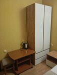 Фотографии номера не соответствуют реальности совсем. Номер был заявлен 16 квадратов, в итоге максимум 11-12, место там только для кровати и покосившегося шкафа, который нормально не открывался. На кровать присели внизу и матрас провалился, так как отвалилась фанерка - основание, пришлось в ночи пытаться на место установить. В душе ледяная вода, теплая начинается через некоторое время только, хорошо бы знать заранее. Не обманывайте клиентов и выставляйте реальные фото номеров!! Из плюсов - расположение и чистота.