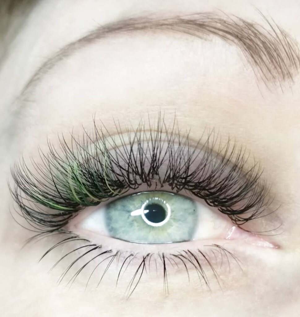 применение теории наращивания ресниц на предоставленной моделе
